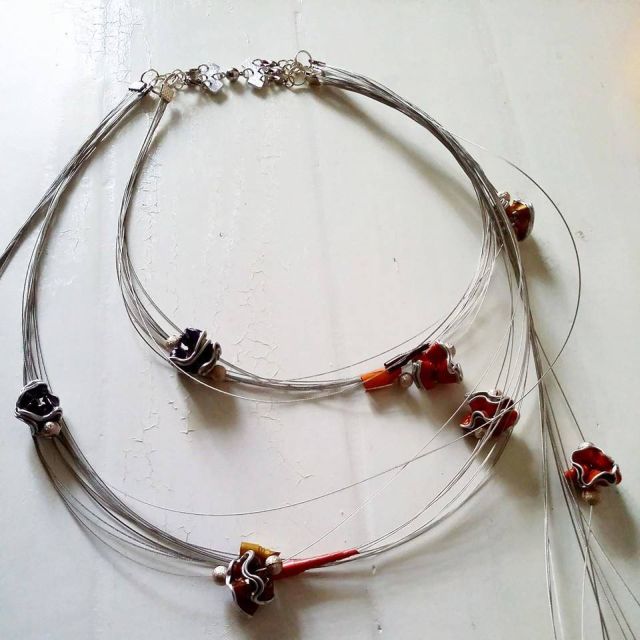 Alessandra, invece è una bambina precoce, già all’età di dieci anni realizza i primi bracciali e orecchini con filo di rame e perline in plastica. Il padre lavora il legno realizzando quadri con la tecnica del traforo e la mamma si diletta a dipingere. Negli anni universitari, frequenta un corso da orafo, a Bari, e si specializza da subito nella tecnica del traforo, facendo una scelta ben precisa: utilizzare metalli non preziosi. L’idea è quella di realizzare un manufatto che abbia una natura sostenibile, il valore aggiunto sta nella tecnica e nella precisione della realizzazione, il metallo più utilizzato da Alessandra Pischetola è l’alluminio, riciclabile infinite volte.
