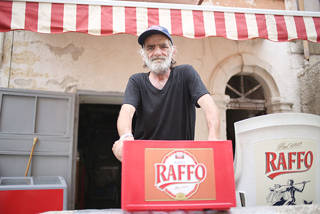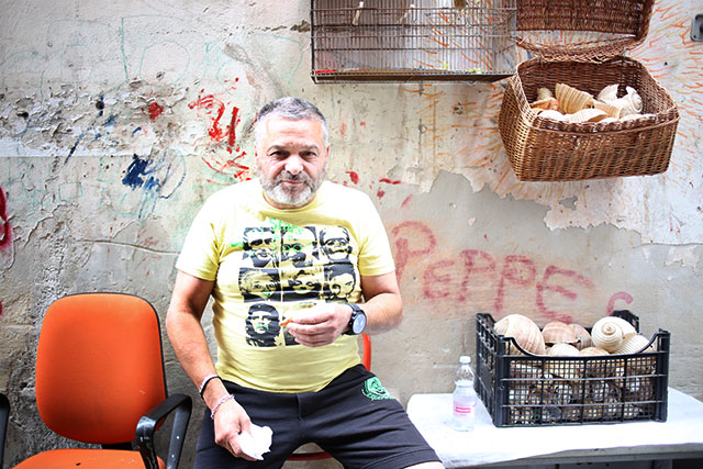 Vincenzo ha 63 anni, ogni mattina si sveglia intorno alle 6 e trascorre il tempo tra casse di Raffo e cruciverba. “Almeno mi passa la giornata – dice abbozzando un sorriso sdentato – e penso meno a questa parte della città che bisognerebbe radere al suolo e restaurare.”