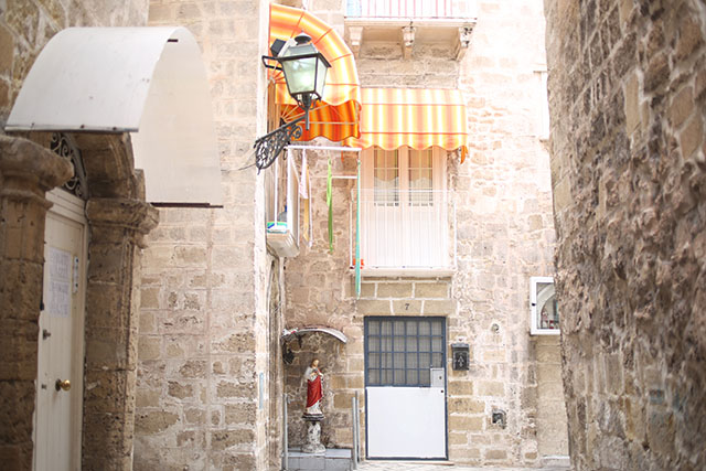 Salutiamo il simpatico fornaio per dirigerci verso Largo Blasi, un angolo caratteristico intagliato tra palazzi storici purtroppo consumati. E’ come se, improvvisamente, malgrado ogni pertugio della città vecchia suggerisca desolazione per lo stato in cui versa, il tempo si sia fermato.