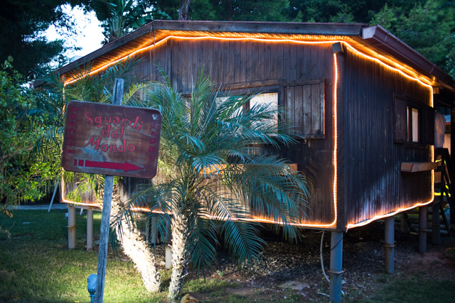 L’esperienza del viaggio con Sguardi dal Mondo inizia già quando metti piede in sede: palafitte in legno circondate da piante fittissime e da una carrellata di lucine natalizie che ti catapultano, con l’immaginazione, in uno di quei villaggi esotici che sei abituato a vedere solo in cartolina. Figurati, non sembra nemmeno di essere a Taranto.