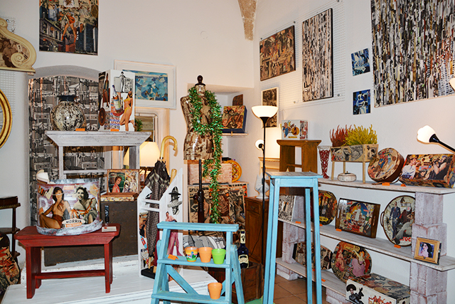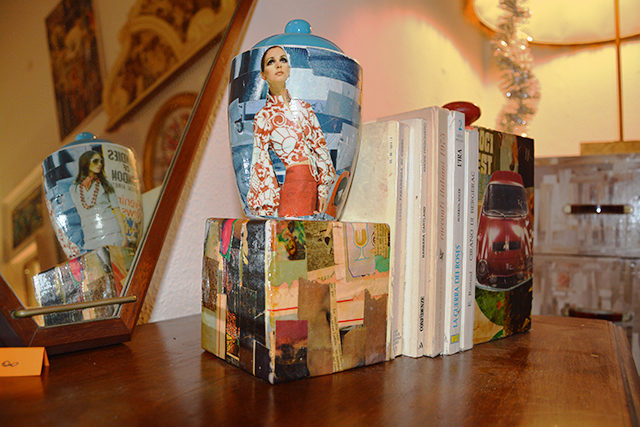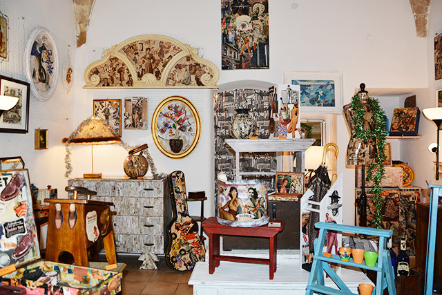 Beppe Ligorio è tarantino ed è stato uno dei primi artigiani d’Italia ad usare riviste d’epoca originali per realizzare lavori di collage su oggetti recuperati. E’ stata una scoperta incredibile. Beppe l’ho conosciuto una sera quando, passando di fronte al suo negozio – “Variety Store” in via Nitti, 46 a Taranto – decisi di imbattermi nelle creazioni che non senza cura e gusto estremi realizza ogni giorno. Quella volta comprai un salvadanaio in legno che ho esposto su una delle mensole di casa mia.