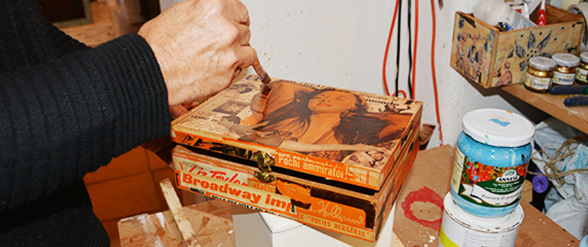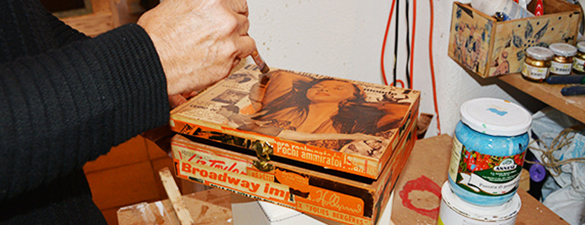 Beppe Ligorio è tarantino ed è stato uno dei primi artigiani d’Italia ad usare riviste d’epoca originali per realizzare i suoi collage su oggetti recuperati. Il risultato è un design creativo e originale.