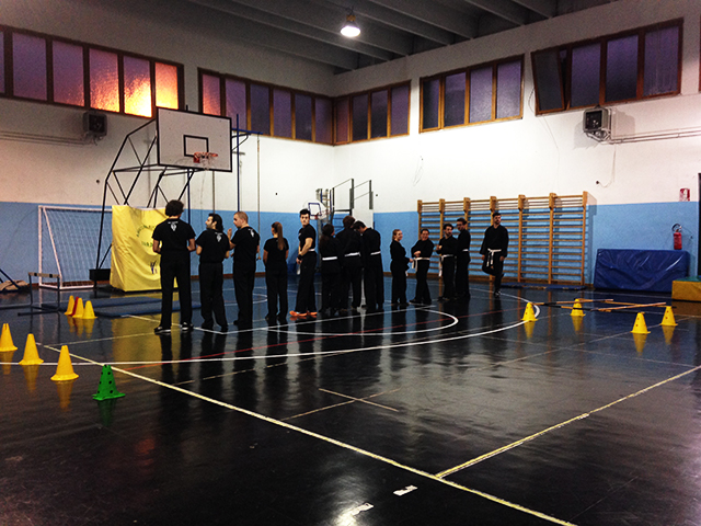 Antonio Iannibelli, presidente della sede tarantina e Davide Piccolo, presidente della sede nazionale a Reggio Emilia mi spiegano che praticare l’In Sen Shu significa affrontare varie materie con vari attrezzi che ti insegnano a gestire il movimento, a controllare cioè il corpo durante il combattimento ma anche durante le attività quotidiane; è un percorso di formazione che non si limita solo alla palestra, che avviene anche al di fuori, tant’è che il Club – almeno due volte l’anno – organizza dei campi d’addestramento su alcune delle vette più alte del Pollino per mettere alla prova le abilità del gruppo in tutto ciò che non è combattimento.