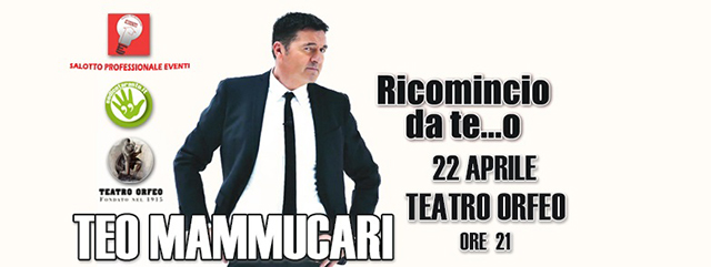 Teo Mammucari sarà al Teatro Orfeo il 22 aprile con il suo nuovo spettacolo: “Ricomincio da te…o”. E non vedo l’ora!