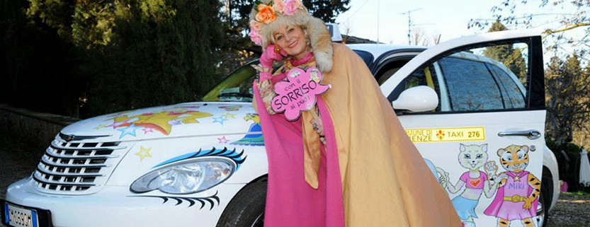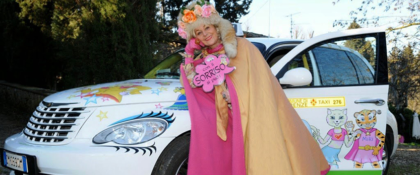 Il suo motto è “Con il sorriso si può”, ed è per questo che ha voluto trasformare i taxi di Milano 25 (che è molto più di un’associazione) in piccole oasi incantate, accessibili, grazie ad una serie di optional, anche a chi ha problemi di disabilità motoria e dove ogni bimbo che sale si sente catapultato in una dimensione magica, dove il cielo e le nuvole si fondono in una distesa di margherite, dove i sedili colorati sono invasi di pupazzi, pelouche, palloncini e caramelle e dove tutto può diventare possibile…