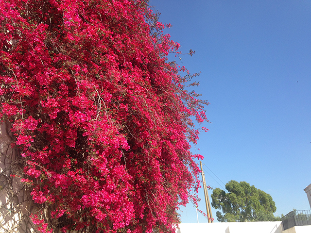Non appena ho varcato il cancello della Masseria Fornaro, a colpirmi è stata l’esplosione di colore delle bouganville che si rincorrono sulla parete bianca, proprio accanto alla stanza dove è stata allestita la mostra, accolta da un banchetto di focacce, dolci e ciambelle preparate con la canapa.
