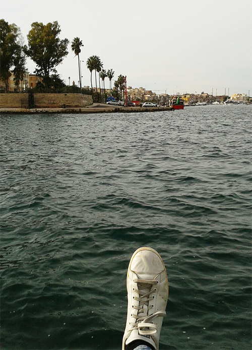 Cazzo uagnù: Taranto è proprio bella. Pure di notte c’ha qualcosa di particolare, coi lampioni che pisciano una luce arancione da brodo di carne. Ma col sole, così, è pura schermaglia, è lucentezza.