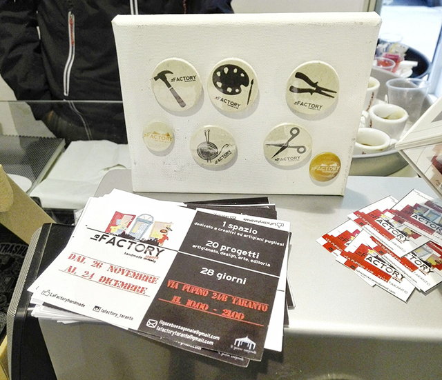 La Factory in sostanza è un’occasione e racchiude 20 progetti di 36 sognatori tra artigiani, creativi e appassionati. L’impatto visivo, non appena varchi la soglia della sede in via Pupino 24/b, è forte. Tra pallet, porte recuperate e tavolini in legno si insinuano le esperienze degli espositori, imprenditori emergenti con il desiderio di far parlare la loro produzione artistica.