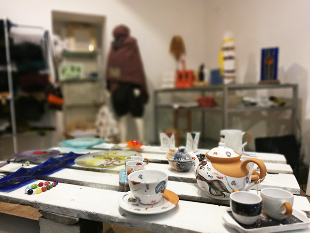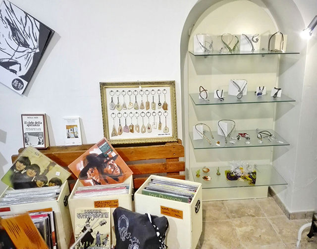 I 2 Eligio mi accompagnano alla scoperta degli angoli più suggestivi. Si parte da Chari, il marchio di un’artigiana di Bari che dopo aver ricevuto dai genitori una macchina per cucire, inizia ad appassionarsi alla sartoria sfoggiando il suo talento nella realizzazione di cappelli, mantelli e borse. Interessanti anche i prodotti di Le Falene: gioielli semilavorati in metallo, alcuni dei quali contenenti resina. Non faccio in tempo ad ammirarne il design, che vengo catturata dalla collezione di vinili di Mirco Moretti e dalle tazze di Life on Mugs: lei grafica e lui copywriter. Uniti nella vita come nel lavoro, Valeria e Domenico hanno creato due linee di tazze, l’una dedicata alla cultura Pop, l’altra al circo. Le adoro letteralmente, ne ho anche acquistata una!