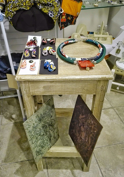 Alternative Bijoux, invece, combina 2 progetti: lei affezionata alla produzione di orecchini, lui di portachiavi in pietra abbinati a gioielli. E poi c’è Bussola Creazioni, che attinge all’arte orientale trasferendola sugli indumenti o sulle collane.