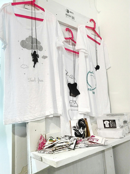 Su una delle pareti della Factory campeggiano, poi, le magliette abbinate a ciondoli fatti con dischi in vinile di Menti a contatto. Una figata assurda, ne ho già adocchiate 3-4. Così come ho adocchiato i lavori all’uncinetto di Ars@Lab, specie il portafazzoletti a divano. Totalmente in love!