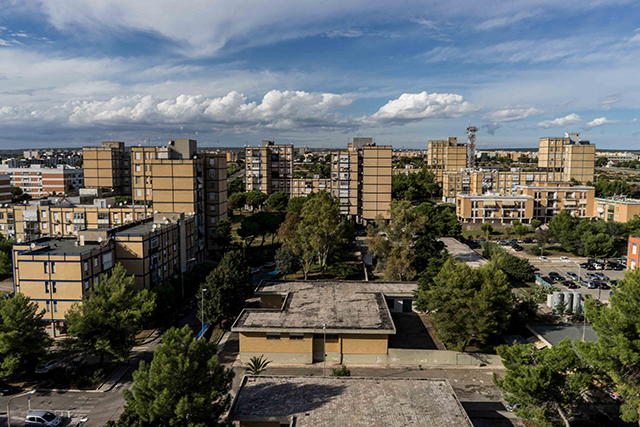 Paolo Sei, come dicono molti tarantini. Un’area di case popolari, farmacie, ruote bruciate, speranza, santini, volti che sembrano provenire da un’altra epoca, da un’altra vita (come l’Alabama di Faulkner). C’è la speranza a Paolo VI, forte, disarmante, che alimenta una periferia dimenticata dal resto dell’impero, candidata al premio della siderurgia.