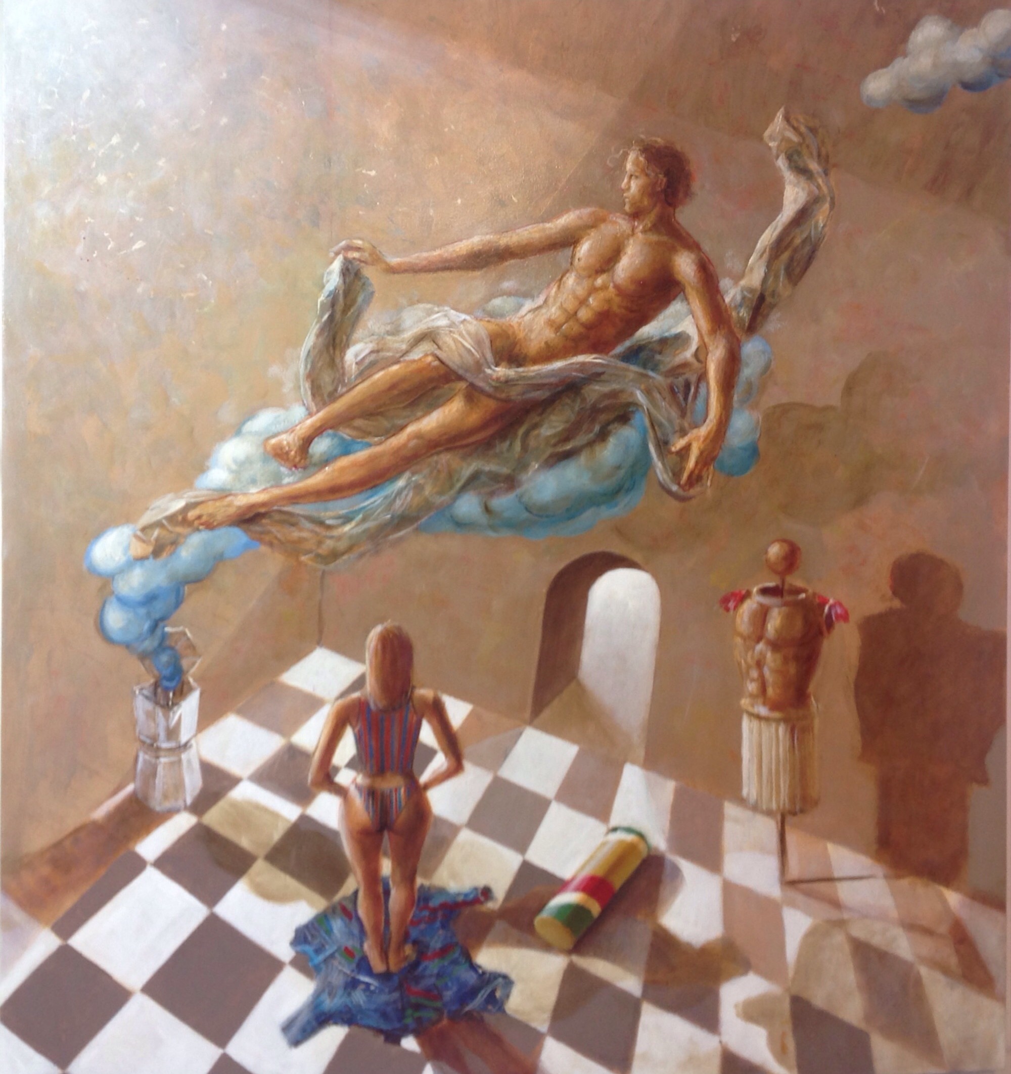 Pittore, scultore e docente ha recuperato le tecniche del Rinascimento e del Barocco in una chiave ironica. Oggetti d’uso quotidiano appaiono incoerenti nella scena rappresentata nel quadro.