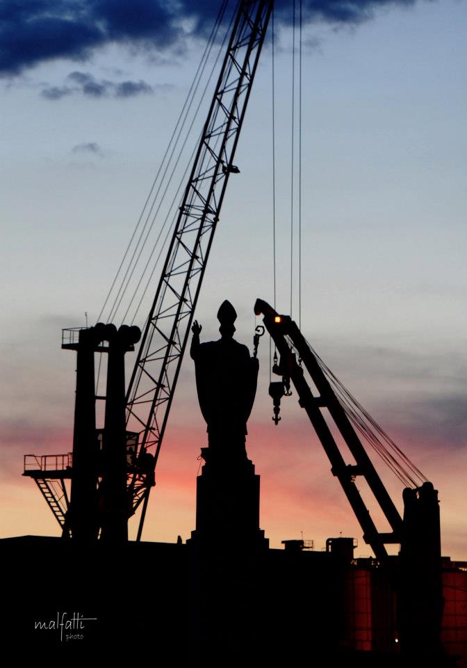 Ore 18,45 di lunedì 8 maggio: ci stiamo preparando alla solenne cerimonia in onore di San Cataldo, patrono di Taranto, la cui statua verrà consegnata al sindaco Ippazio Stefano così come da tradizione. Seguirà la processione della statua del Santo Patrono che attraverserà Largo Arcivescovado, Corso Vittorio Emanuele II, fino al Molo Sant’Eligio dove il simulacro argenteo del Santo irlandese verrà imbarcato sulla motonave Cheradi della Marina Militare per la consueta processione a mare.