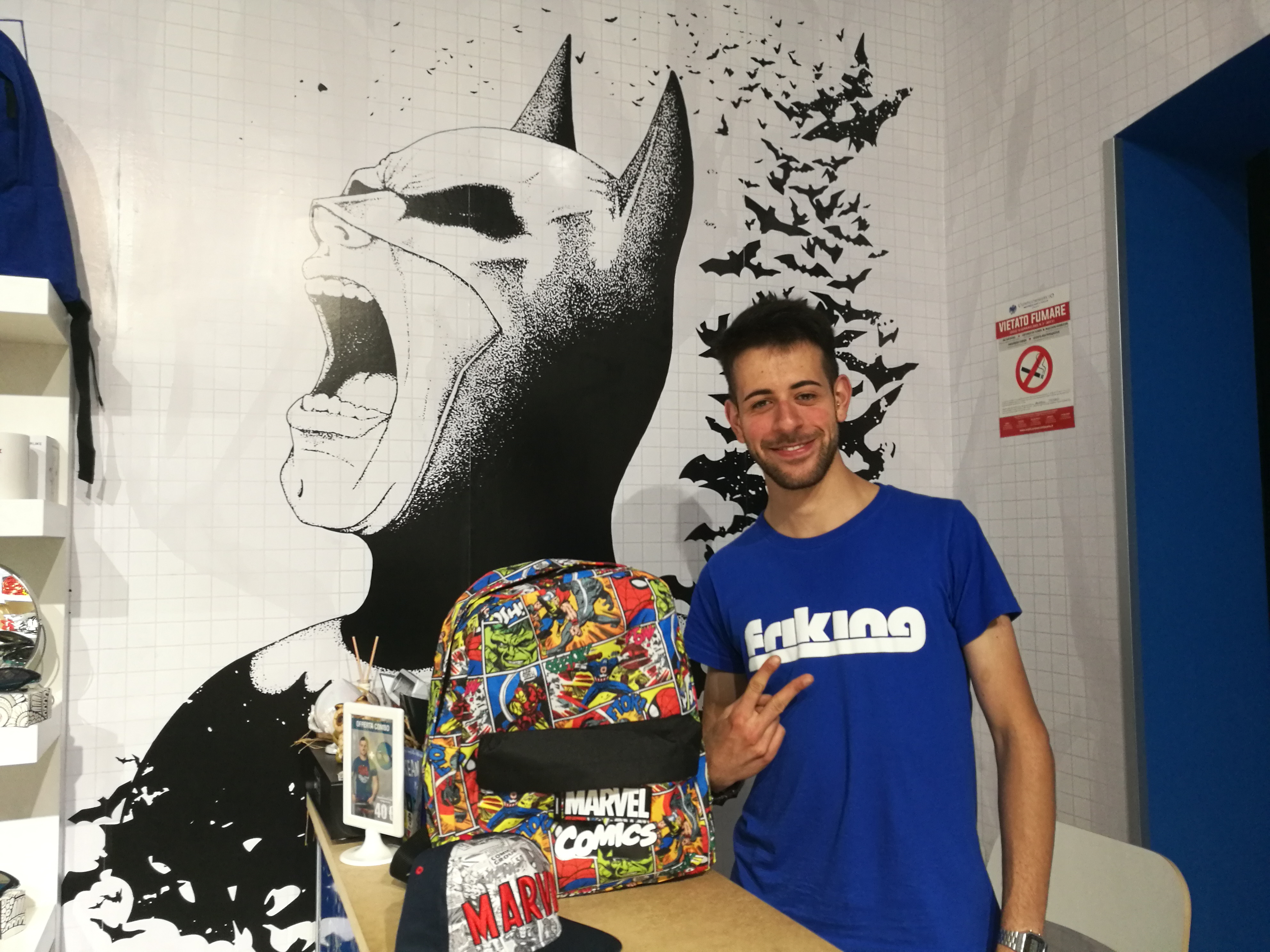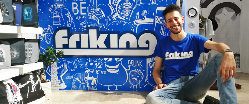 Eppure, dopo una serie di peripezie e difficoltà familiari che non starò qui ad elencare, Andrea ce l’ha fatta e ha aperto in via Cavallotti il primo franchising pugliese di Friking, marchio spagnolo di magliette e prodotti originali con un tocco umoristico e di forte impatto visivo, disegnati da un team di artisti e professionisti internazionali.