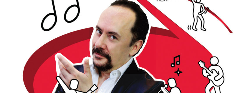 “E la musica mi gira intorno” è uno show frizzante e poliedrico tra musica, sketches comici, racconti e aneddoti.