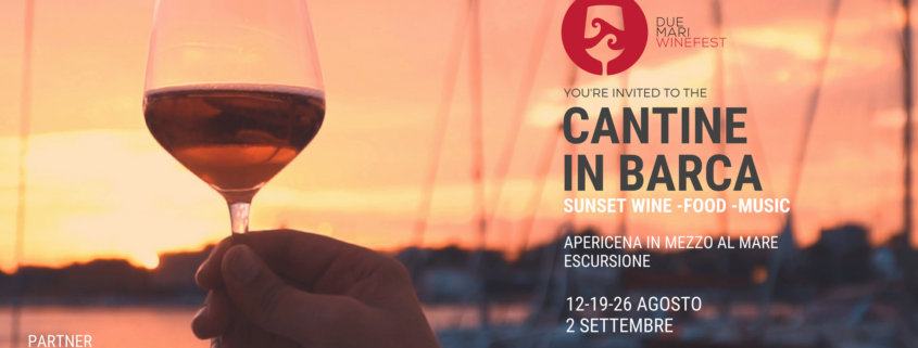 Il Due Mari WineFest, diventato l’evento del vino di Taranto e che anno dopo anno assume sempre più un carattere nazionale contando tra le sue fila cantine umbre, toscane, venete e friulane, lancia il format dell’estate: Cantine in barca – Sunset Wine, Food & Music.”