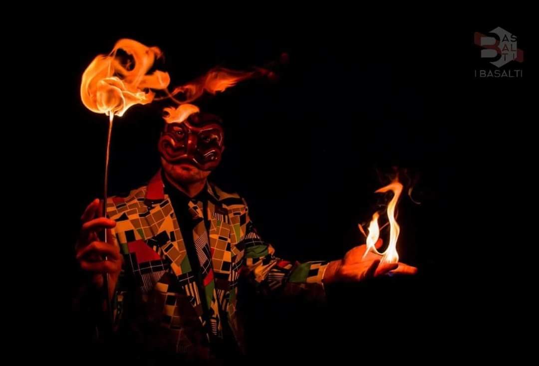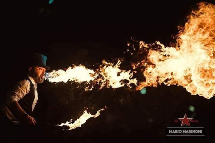Non si potrà fare a meno di lasciarsi catturare dalle sue evoluzioni fiammeggianti, che spaziano da fontane di fuoco a pioggia di gocce infuocate, senza far mancare i classici numeri di mangia fuoco e sputa fuoco. Non saranno da meno gli straordinari Menti Ardenti, otto giovani professionisti, di origini fasanesi, che si esibiranno in armoniche coreografie alternate da ritmati ensemble, il tutto sotto un unico comune denominatore: il fuoco. Ad alto rischio lo spettacolo del fuoco de “Il secondo elemento” proposto dal siciliano Marco Ape, uno dei più bravi manipolatori di fuoco italiani. Accompagnato da un addetto alla sicurezza, pronto ad intervenire in caso di pericolo, questo artista travolgerà il pubblico in una vera e propria escalation di fiamme, passando da coreografie particolari alla manipolazione delle fiamme attraverso numeri di fachirismo e mangiafuoco. Servendosi di bastoni infuocati, del Rope Dart (corda lunga 3 metri con un’estremità infuocata, annodata attorno al corpo mentre si danza) lo show si concluderà con finale esplosivo di sputa fuoco “acrobatico”.